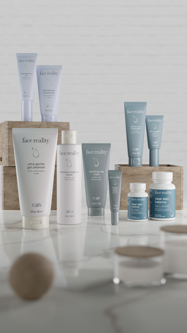 Face Reality is a skincare brand that specializes in acne treatment and prevention. The Face Reality approach combines a thorough understanding of the acne cycle with an effective skincare regimen tailored to each individual’s specific needs. Their philosophy revolves around using medical-grade ingredients that target the root causes of acne, such as excess oil production, clogged pores, and inflammation, while promoting overall skin health. This personalized approach ensures that clients not only see improvements in their acne but also experience enhanced skin texture and tone.